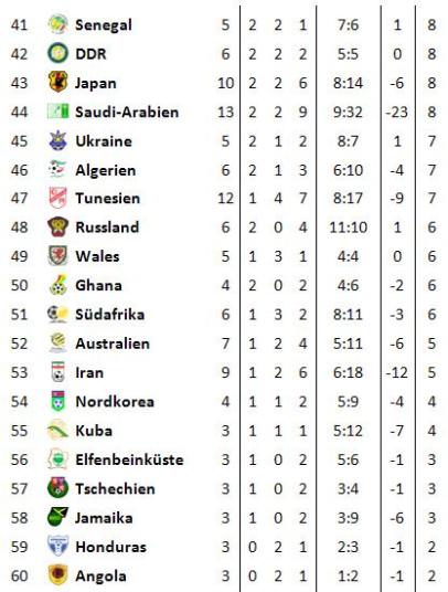 Die Plätze 41 bis 60 der ewigen WM-Tabelle: