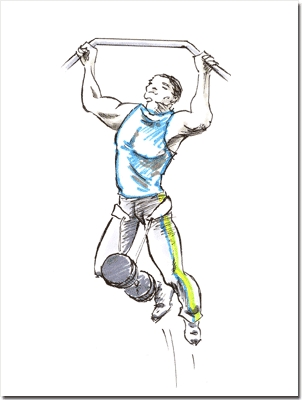 Wenn Du mehr als 15 Klimmzüge schaffst, ist die Muskelaktivierung bei jeder einzelnen Wiederholung relativ gering. Um mehr Kraftaufbau zu erzielen, kannst Du dann mit Zusatzgewicht arbeiten, das Du Dir mit einem speziellen Klimmzug-Gürtel umhängen kannst.