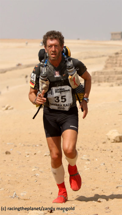 Rafael Fuchsgruber: Das UAR wird eher ein Abenteuerlauf über 200 Kilometer in fünf Etappen (48/42/49/42/19km). Das Format klingt zunächst einfach. Aber die Temperaturen werden nachts bei knapp 30 und tagsüber bei 40 Grad liegen. Da wird das Schlafen echt zur Qual. Aber es gibt auch tolle Aussichten. Bei der Libyan Challenge 2008 war ich in der Sahara 200 Kilometer nonstop unterwegs. Der Abstand zu den nächsten Läufern vor mir betrug drei Stunden und die nächsten nach mir im Ziel waren zwei Stunden entfernt. Diese Form des alleine Laufens liebe ich außerordentlich.